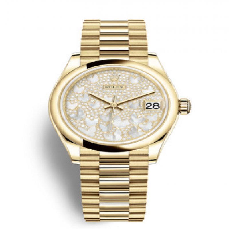密镶262颗钻石表盘,镶有粉红色珍珠母蝴蝶图案